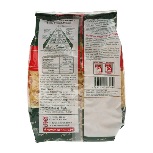 Sert durum buğdaylarından el değmeden üretilen Arbella Yüksük hiçbir katkı maddesi içermez. Arbella makarnalar yapacağınız tüm soslarla uyum sağlar ve lezzetli sofralar kurmanıza yardımcı olur.