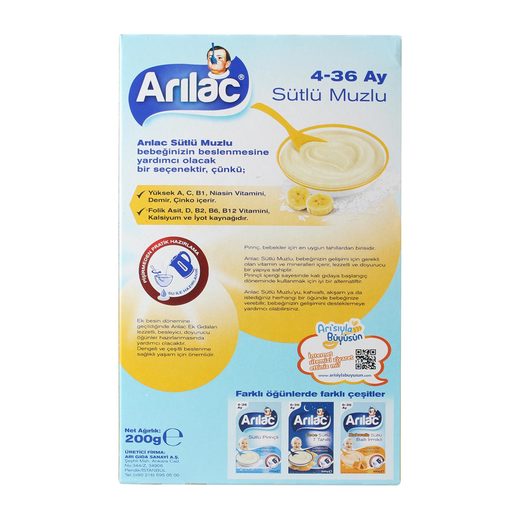 Arılac sütlü muzlu bebeğinizin beslenmesine yardımcı olacak bir seçenektir, çünkü, yüksek A, C, B1, Niasin vitamini, Demir, Çinko içerir.