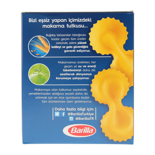 Mutfaktaki en neşeli formlar arasında yer alan Kelebek makarnalar tattan tada uçarak kendilerini değişik lezzet kombinasyonlarına uyarlarlar.Barilla,canlılığını arttırmak için nane ve domatesli bir sosla denemenizi öneriyor.