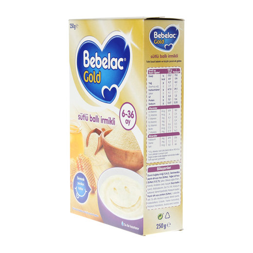 Bebelac Gold Sütlü Ballı İrmikli 6. aydan itibaren kullanımı uygun ek gıdadır.Bebeğinizin beslenmesine yardımcı olacak bir seçenektir.Bebek sütü içerir.Bebeklere özel bal ve irmikli karışımı vardır.