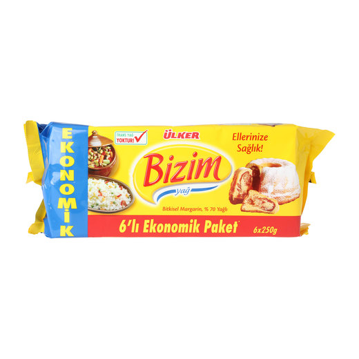 Bizim margarin, trans yağ içermeyen lezzetli bir margarindir. Bu ürünü yemeklerinizde ve hamur işleriniz de kullanabilirsiniz.