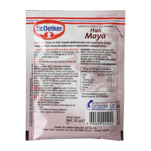 Dr. Oetker Hızlı Maya ile uzun işlemlere gerek kalmadan, tek seferde mayalama ile 15 dakika gibi kısa bir sürede tuzlu ve tatlı tarifler hazırlanabiliyor.