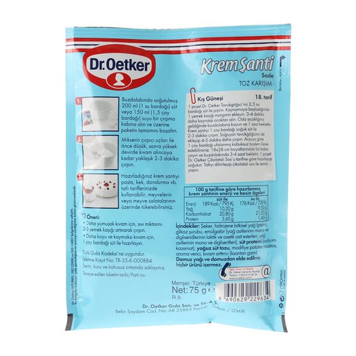 Garantili tatlılar hazırlamak için baş yardımcı. Her türlü kek, pasta, tart süslemesinde, parfe, frigo, kup gibi soğuk tüketilen tatlıların yapımında, meyve salatalarını süslenmesinde idealdir.Su veya süt ile hazırlanabilir.