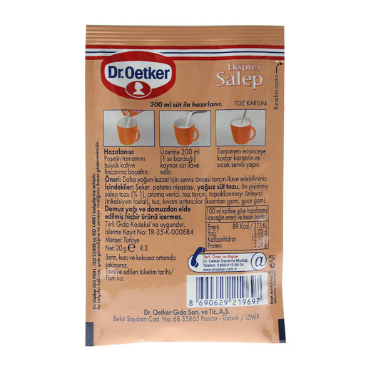 Dr.Oetker’den sıcak içecek tutkunlarına müjde, Ekspres Salep ile soğuk kış günleri sıcak geçecek. Hazırlaması son derece kolay. Sadece 150 ml (1,5 çay bardağı) kaynar süt ilave edilerek hazırlanıyor.