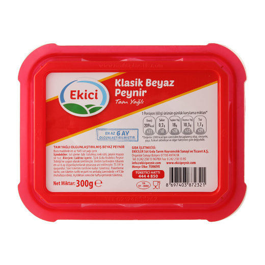 Ekici’nin sadece peynir üretmek için en iyi sütleri kullanarak yaptığı klasik peyniri tamamen doğal üretilir, herhangi bir kültür ilavesi içermez.%100 inek sütünden üretilen Ekici beyaz peynir’lerin bir kilogramı tam 8 litre sütten üretilir.İdeal lezzete ve kıvama ulaşması için üretimden sonra en az 6 ay boyunca dinlendirilir.