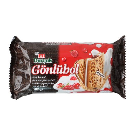 Eti burçak sütlü kremalı frambuaz marmelatlı cranberry parçacıklı yulaflı bisküvi.