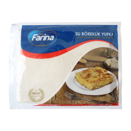 Farina su böreklik yufka ile lezzetli su börekleri yapabilirsiniz. Bu yufkanın formu su böreği yapmaya uygundur.