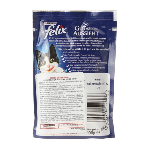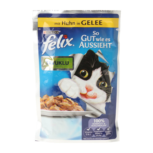 Felix, yetişkin kediler için tavuklu tam, yaş kedi maması.
