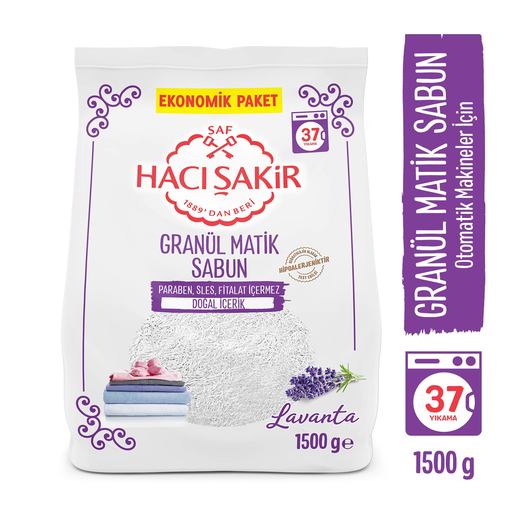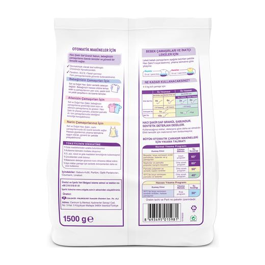 Hacı Şakir Saf Granül Sabunu, güvenle kullanabileceğiniz formülü ile bebeğinizin ve ailenizin çamaşırlarını özenle temizler, güvenli bir temizlik sağlar.