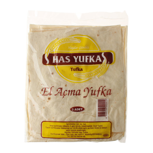 Has yufka elde açması,incecik yufkalar olarak vakumlu paketlerde sunulur. Böylelikle ilk günkü tazeliğini korur.
