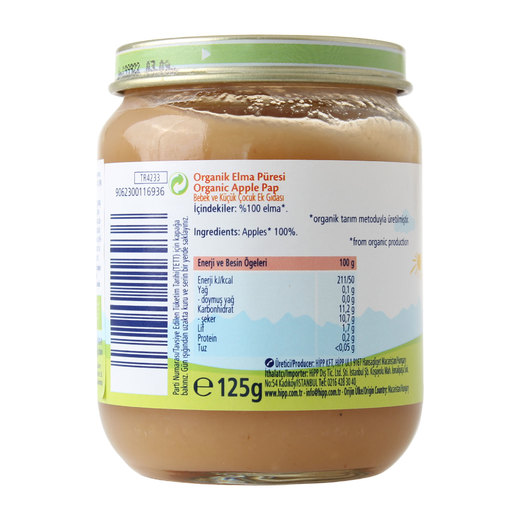 İlave şeker içermemektedir. Şeker içeriği organik meyvelerden gelmektedir. Organik tarım ve hayvancılık ürünü olan kavanoz mamaları, hormonsuzdur, suni gübre, katkı maddesi içermez, üretiminin her her aşaması kontrol edilir.