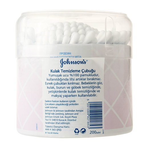 Johnson's kulak temizleme çubuğunun yumuşacık ucu %100 pamukludur. Çocuğunuz ve sizin için kullanımı kolay ve hijyen olarak üretilmiştir.%100 pamukludur.Kullanıldığında lifsi atıklar bırakmaz.Esnek çubukları kırılmaz.