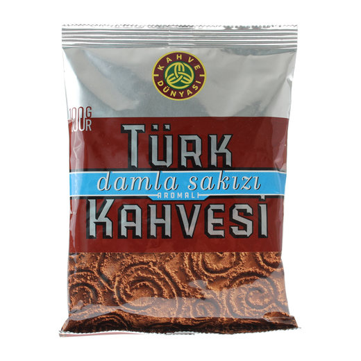 Kendine has tadı, pürüzsüz köpüğü, eşsiz kokusu, pişiriliş yöntemi ve sunumuyla özgün bir kimliği ve geleneği olan Türk kahvesi çeşitleri Kahve Dünyası’nda! Bol köpüklü Türk kahvesi yapabileceğiniz onlarca tat ve koku maddesi barındıran Kahve Dünyası damla sakızı aromalı Türk kahvemizi 100 gr.’lık ambalajlarında beğeninize sunarız.