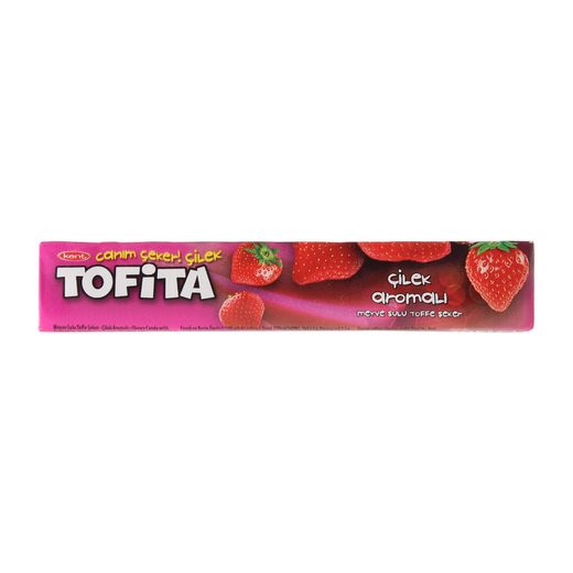 Tofita gerçek meyve lezzetlerinin tadına varmak isteyenlerin yegane eğlencesi.1999’dan beri pazarda olan Tofita, meyve aromaları ile en sevilen yumuşak şeker markası.Tofita’nın bu lezzetli meyve çeşitleri, Böğürtlen, Portakal, Vişne, Çiğnerken eğlenirsin.