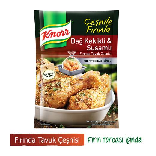Hiçbir koruyucu katkı maddesi içermeyen Knorr Dağ Kekikli ve Susamlı Tavuk Çeşnisi ile mis gibi kokulu, yumuşacık tavuklar hazırlayabilirsiniz.