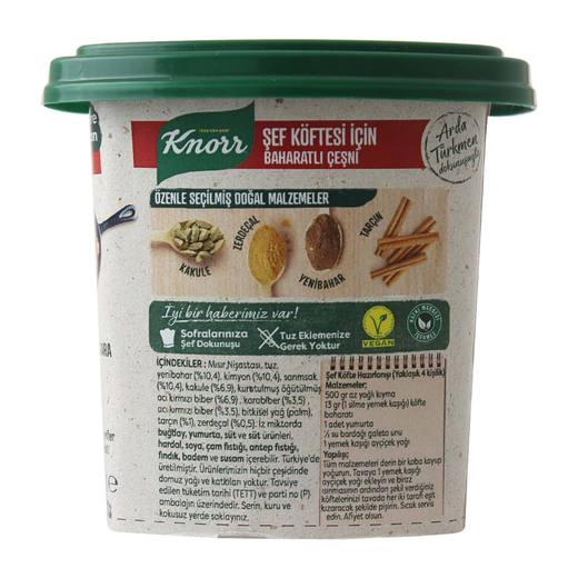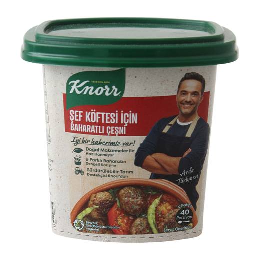 Şef köftesi için baharatlı çeşni, doğal malzemeler ile hazırlanmıştır. 9 farklı baharatın dengeli karışımı süredürülebilir tarım destekçisi Knorr'dan.