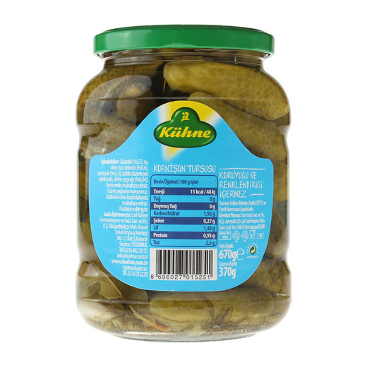 Kühne ege usulü turşusu defne, dereotu ve sarımsağın birleşmesiyle oluşan eşsiz bir lezzettir. Sofralarınıza Ege esintisini getiren Kühne ege usulü turşu'sunu sevdiklerinizle birlikte tüketebilirsiniz.