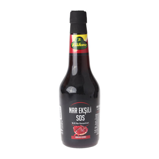 Nar ekşili sos, Türk mutfağının vazgeçilmez klasiklerindendir. Doğal antioksidan oluşu, kalp ve damar sağlığını koruması ve C vitamini deposu olması sebebi ile giderek tüketimi artan nar ekşili sos, Kühne kalitesi ile siz tüketicilerimizin beğenisine sunulmuştur.