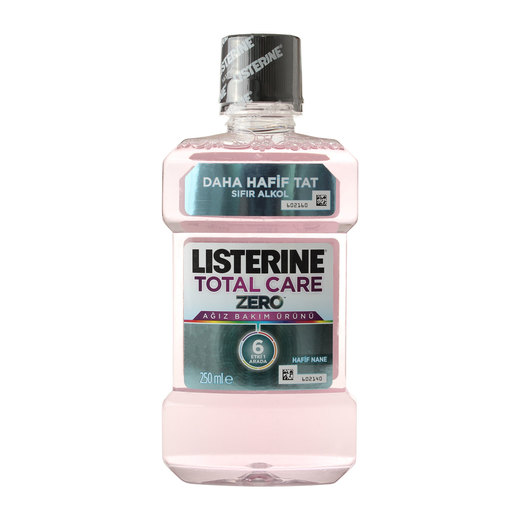 Listerine total care zero, komple ağız hijyeni için sunduğu 6 etki ile derinlemesine ağız temizliği sağladığı kanıtlanmış, alkolsüz, hafif tada sahip bir üründür. Günde iki kez kullanıldığında, fırçalama ile ulaşılmayan alanlara ulaşır, plağı azaltır ve önler, diş etlerinin sağlıklı kalmasını sağlar, nefesi tazeler.