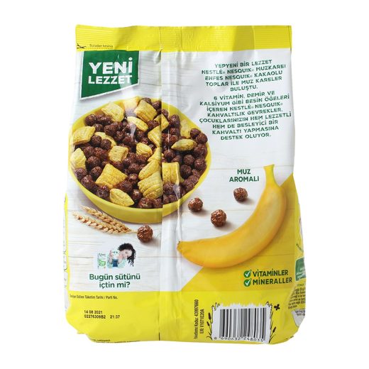 Yeni bir lezzet Nestle Nesquik muzkare enfes Nesquik kakaolu toplar ile muz kareler buluştu. 6 vitamin , demir ve kalsiyum gibi besin öğeleri içeren Nestle Nesquik kahvaltılık gevrekler, çocuklarınızın hem lezzetli hem de besleyici bir kahvaltı yapmasına destek olur.