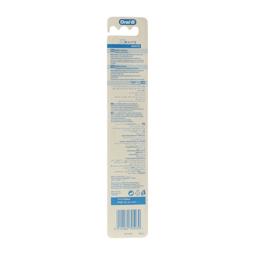 Oral-B 3D white'da kullanılan mavi ve beyaz kıllardan oluşan sistem ağız boşluğu,dişlerin arka yüzeyleri ve diş arasındaki boşluklar gibi erişilmesi en zor noktaların tam olarak temizlenmesine imkan verir.Dış kısımdaki daha uzun uzun kıllar fırçalama sırasında diş macununun diş yüzeyine daha iyi tutunmasını sağlar.