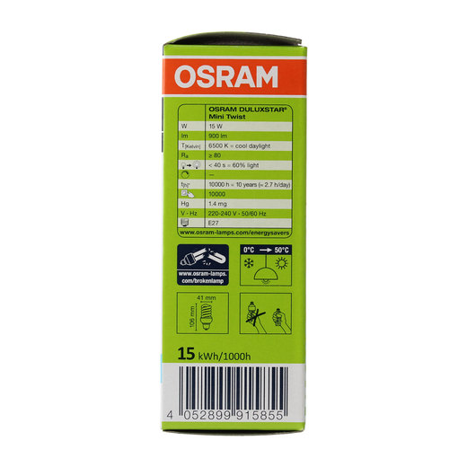 Osram ampül ailesi ile hem bütçeden hem enerjiden tasarruf edin.Farklı güçleri, ışık renkleri, şekiller ile müşterileriniz her türlü uygulama için Osram ampül ürün gruplarından kendilerine uygun mükemmel aydınlatma çözümünü bulabilecekler.15 W,900 lm,Cool daylight