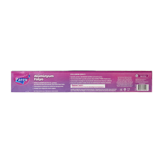 Parex alüminyum folyo, gıdaları dış etkenlerden koruyarak uzun süre taze tutar. Yiyeceklerin kokularını birbirine karıştırmaz. Gıdalar için hijyenik ortam sağlar.