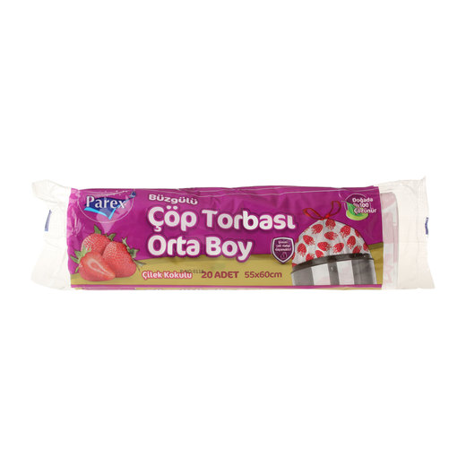 Parex kokulu çöp torbaları ile kötü kokulara son veriyor, poşetten çıktığında mis gibi çilek kokusu yayıyor. Tüm serisi %100 doğada çözünür Parex çöp torbaları ile daha temiz bir dünya sizin elinizde. Parex çöp torbaları ekolojik Çevrenin temiz tutulmasına yardımcı olur, kalitelidir.