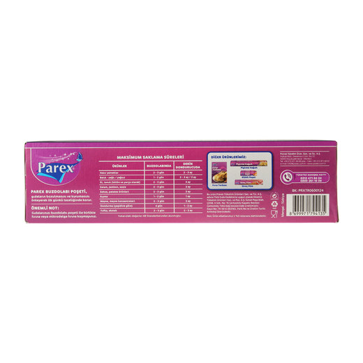 Parex buzdolabı poşeti meyve, sebze, kuru gıda gibi yiyeceklerinizi dış etkenlerden korur, gıdaların bozulmasını ve kurumasını önleyerek ilk günkü tazeliğinde korur.Dondurulacak gıdaların derin dondurucuda saklanması için idealdir. Her türlü gıda maddesini ağzını kapatarak buzdolabında saklayabilirsiniz.