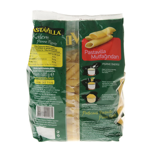 Üstün teknoloji kullanılarak makarna severlere sunulan Pastavilla makarna çeşitlerinden biri olan Pastavilla Kalem delikli şekli itibarıyla sosları iç kısmında tutarak, özellikle iri taneli soslarla çok iyi uyum sağlamaktadır.Et, sebze parçaları, krema ve yağ bazlı soslara uygundur ve aynı zamanda fırın makarna olarak da çok iyi sonuç vermektedir.