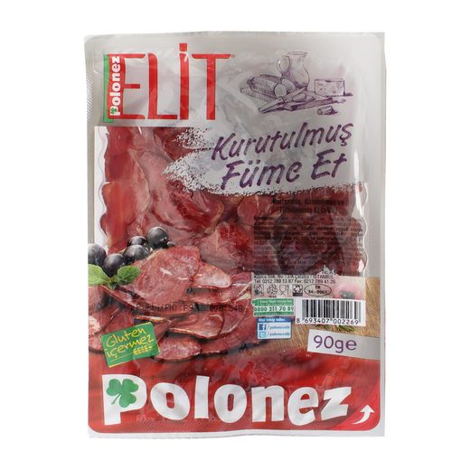 Polonez’in özel seçilmiş taze dana bonfile ve kontrafile etlerinin tuz ile kaplanıp,kürlenip, doğal gürgen,meşe odun talaşları ile kurutulmaktası ile üretilmektedir.