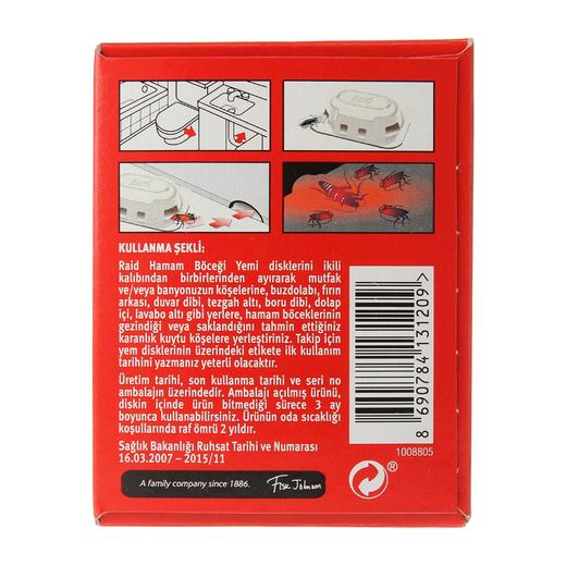 Evde bulunan veya dışarıdan gelebilecek böceklerden korunmayı sağlar. Etrafa yayılmaz, rüzgarda uçuşmaz. Böcekler yem disklerinin deliklerinden geçer, çekici lezzetteki özel formüllü yemleri yer ve yuvasına taşır. 21 gün içinde azalır ve giderek yok olur.