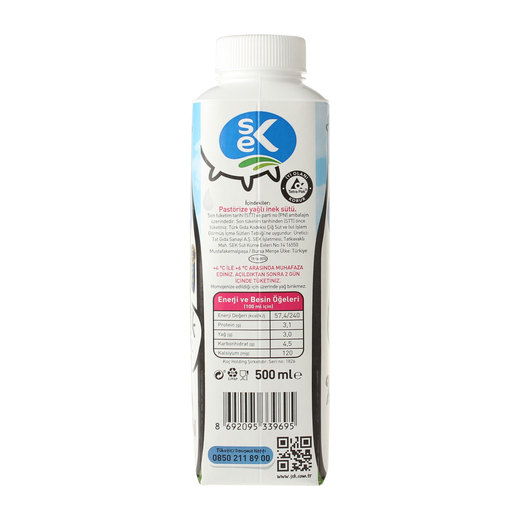 Türk Gıda Kodeksi gereği hiçbir katkı maddesi içermeyen yeni nesil Sek günlük sütü,özel ambalajında ilk günkü tazeliğiyle uzun süre buzdolabında saklayabilirsiniz.Benzersiz ve öncü bir ürün olan yeni nesil Sek günlük süt, kullanımı rahat 1 l, 500 ml ve 200 ml ambalajlarıyla yeni nesillere sütü sevdirecek.