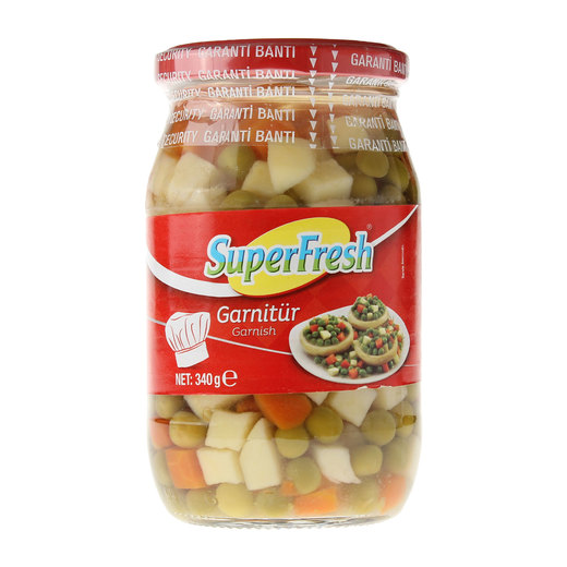 Superfresh garnitür,sebze ve meyvelerinde genetik yapısıyla oynanmamış tohumlar kullanır.Katkı maddesi ve hormon içermez -40˚C'de IQF yöntemiyle şoklanarak dondurulan sebze ve meyveler, buzdolabında 24 saat, buzlukta 7 gün ve -18˚C'deki derin dondurucuda son tüketim tarihine kadar (2 yıl) saklanabilir.