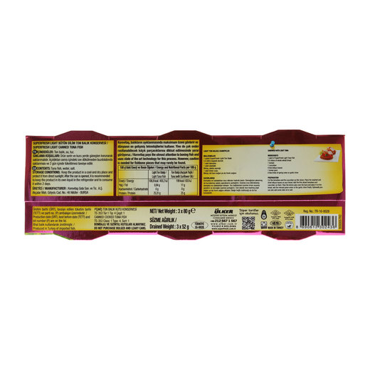 Superfresh light ton balığı, yüzde 100 katkısız ve doğaldır. Superfresh light ton balığını öğünlerinize afiyetle dahil edebilirsiniz. Salatalara, makarnalara ve sandviçlere katabilirsiniz.