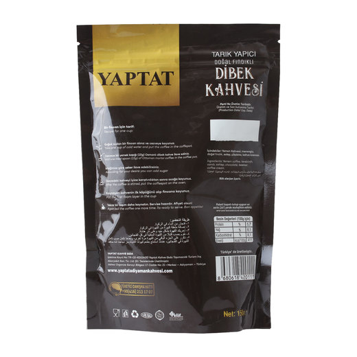 Yaptat dibek kahvesi doğal fındıklı içindekiler: Yemen kahvesi, menengiç, doğal fındık, salep, çikolata, kahve kreması yaptat kalitesiyle bu lezzetten vazgeçemeyeceksiniz.