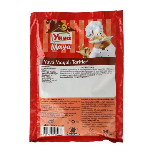 Yuva 100g, genellikle ev tipi uygulamalarda kullanılır.Geleneksel poğaça tipi hamurlar, Simit, börek, çörek, açma ve diğer her türlü pastacılıkta kullanılır.